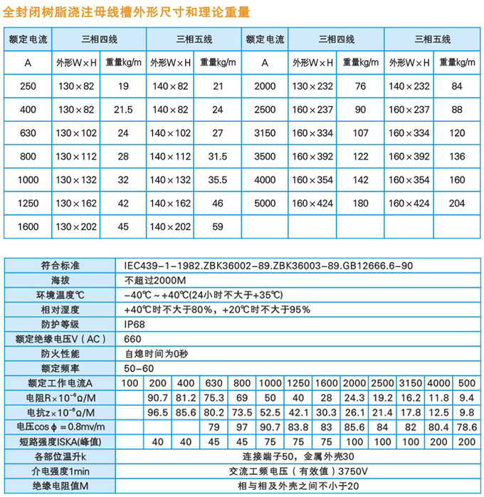 全封閉樹脂澆注防水母線槽是無金屬外殼母線槽,防水母線槽采用特殊配方的復(fù)合樹脂和定量特選的混合材料相混合制成高性能的絕緣材料,將銅母線直接澆注密封。不存在空氣間隙,無煙囪效應(yīng),母線毛刺或過載不會引起短路。絕緣材料不含鹵素,阻燃不會釋放出有毒氣體。外殼防護(hù)等級IP68,不僅耐水、耐火、耐腐。全天候產(chǎn)品,可長期在零下40°C的環(huán)境工作,絕緣樹脂不開裂。無金屬外殼,抗各種化學(xué)品腐蝕,在有迷流的環(huán)境中工作,不會發(fā)生外殼電腐蝕的現(xiàn)象。優(yōu)良的耐水性能,可長期水中工作,可在電纜溝內(nèi)使用,也可埋地敷設(shè)。A級耐火性,可在950-1000°C的火焰中工作90min以上,保持線路不中斷。