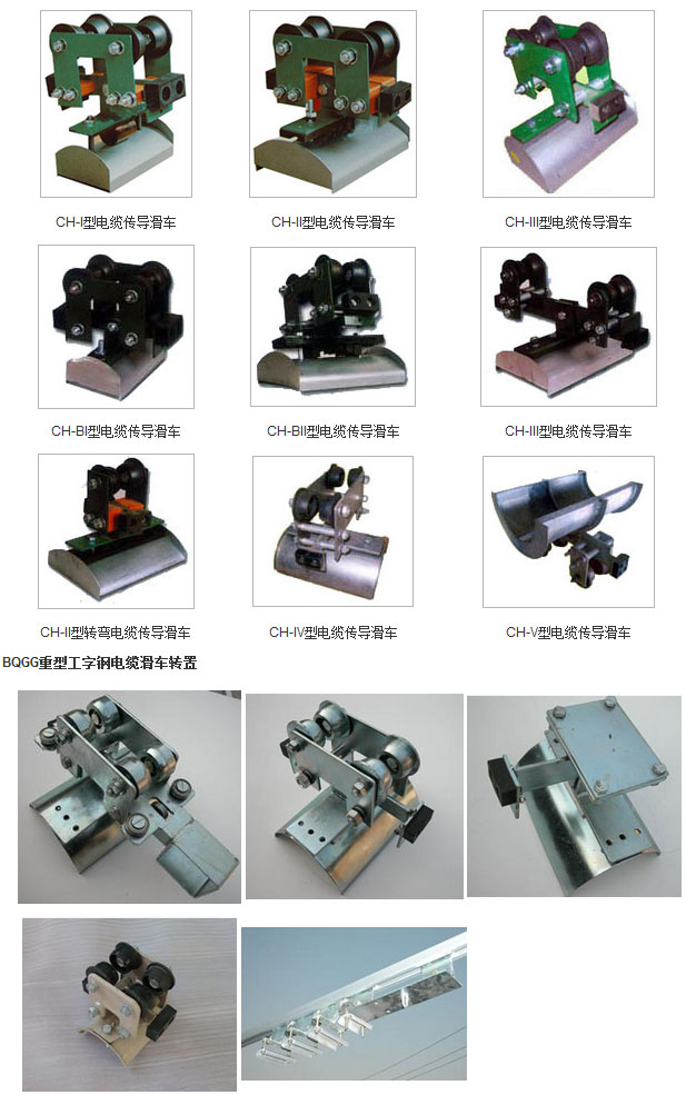GHC型系列工字鋼電纜滑車裝置用于移動供電機(jī)械在移動中電纜的懸吊與移動,已廣泛應(yīng)用于各類起重機(jī)械中。工字鋼電纜滑車該裝置具有結(jié)構(gòu)堅(jiān)固。移動靈活。安全可靠等優(yōu)點(diǎn)。GHC型滑車由牽收引滑車、電纜滑車、終端滑車三部分組成,牽引滑車跟隨移動機(jī)械導(dǎo)纜(牽引)裝置,每個(gè)移動機(jī)械配1個(gè),隨移動機(jī)械往返運(yùn)行。中間電纜滑車將電纜懸掛在工字鋼軌道范圍內(nèi)隨牽引滑車移動,兩端并裝有緩沖撞頭,滑車視移動長度不同而定數(shù)量。終端滑車固定在工字鋼導(dǎo)軌末端,一般每個(gè)移動機(jī)械設(shè)置1個(gè)。工字鋼電纜滑車該系列滑車分Ⅰ、Ⅱ、Ⅲ、Ⅳ、Ⅴ五種型號,如用戶采用12#、14#、16#或更大號數(shù)工字鋼,可在訂貨時(shí)注明,本廠可成套供貨。
