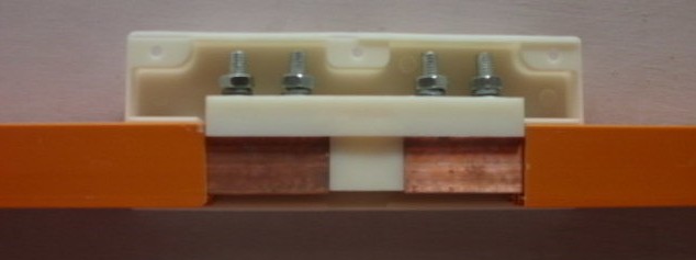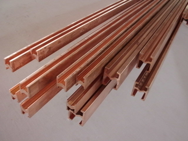 滑觸線的主體—導(dǎo)軌本體材料,為適應(yīng)不同的環(huán)境需要,防止大氣中二氧化硫、硫化氫、酸、堿以及沿海地區(qū)大氣中鹽霧所含的氯離子,導(dǎo)軌材料選用****導(dǎo)電銅合金,其含銅量≥99.95%。它通過(guò)電熱擠軋的方式,由****軋機(jī)逐次逼近一次性軋制而成。由于導(dǎo)軌本體的截面設(shè)計(jì)呈“H”形狀,故而又通稱為H型滑觸線。 導(dǎo)電銅合金材料等級(jí)代號(hào)為Cu-CATH-1,電流密度為100%Amps/mm2=1000 Amps≥3.76 抗拉強(qiáng)度為:320-380N/mm2以上。 Cu-CATH-1導(dǎo)電銅合金材料的化學(xué)成分執(zhí)行標(biāo)準(zhǔn)為GB/T5231-2001:  導(dǎo)電銅合金材料經(jīng)特殊工藝表面處理后,可****防止大氣中有害氣體的侵蝕,同時(shí)也可大大的延長(zhǎng)其使用壽命。 由于導(dǎo)軌本體導(dǎo)電銅合金材料的硬度是導(dǎo)軌本體鋁合金材料的5倍,故而集電器的金屬石墨電刷可與導(dǎo)電銅合金本體直接摩擦接觸來(lái)拾取電能,從而舍去V型不銹鋼帶。(注:導(dǎo)軌本體鋁合金與V型不銹鋼帶的嵌入清潔度和密實(shí)度不可能做到100%,從而易在氣隙之間生成氧化膜形成接觸電阻,使集電器電刷與V型不銹鋼帶直接滑動(dòng)接觸時(shí)形成電流瓶頸,從而使集電器電刷與V型不銹鋼帶爍傷跳火粘接,****終將拉拽掉不銹鋼帶)。