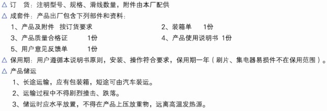 五、附件 1、集電器(更多集電器請(qǐng)參閱“H型滑觸線集電器”章節(jié))  ( 以上為) 200A以下集電器  200A集電器 200A不銹鋼集電器 300A-800A集電器  1250A集電器 集電器 1600A集電器 2、膨脹段(更多膨脹段請(qǐng)參閱“H型滑觸線膨脹段”章節(jié))  3、檢修段及端帽